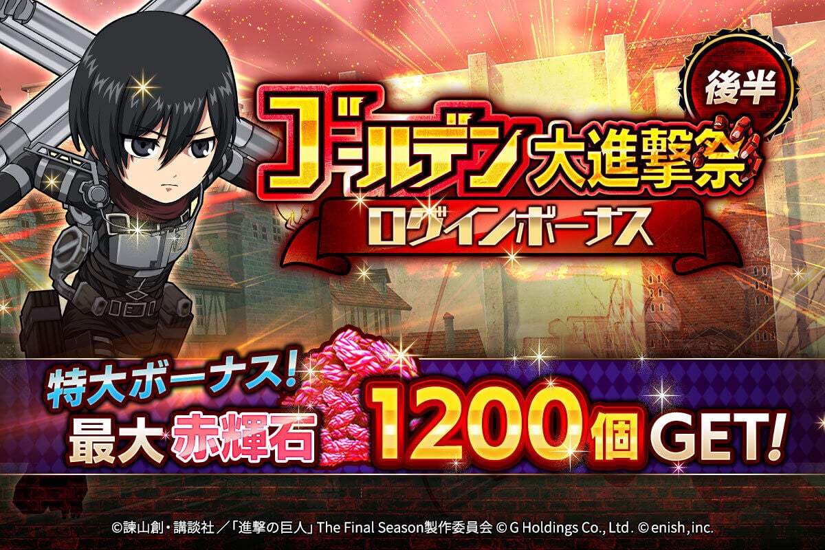 Copyright Note: © Hajime Isayama, Kodansha / “Attack on Titan” Final Season Production Committee © G Holdings Co., Ltd. All Rights Reserved. © enish, inc.