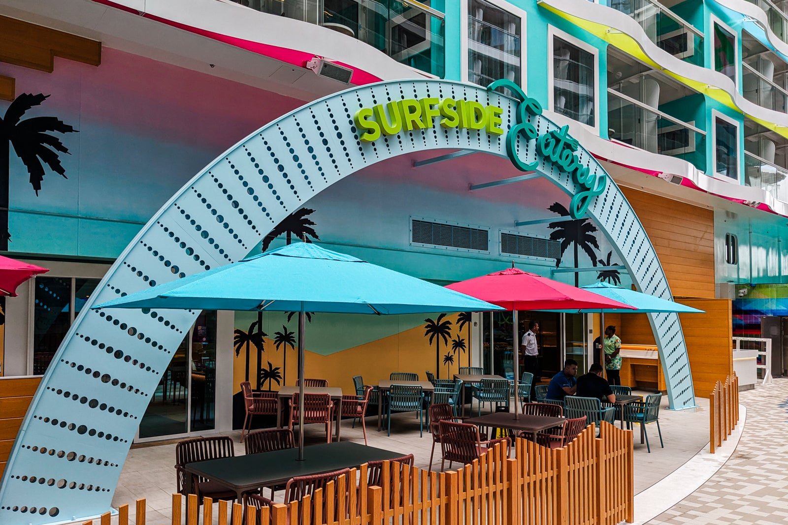For example, in Surfside, a neighborhood geared toward young families, you'll find three restaurants: Surfside Eatery buffet, Surfside Bites for quick kids' meals, and Pier 7, a casual specialty restaurant where kids eat free, but parents can enjoy elevated lunch and dinner specials. No one should travel across the ship when hunger strikes.