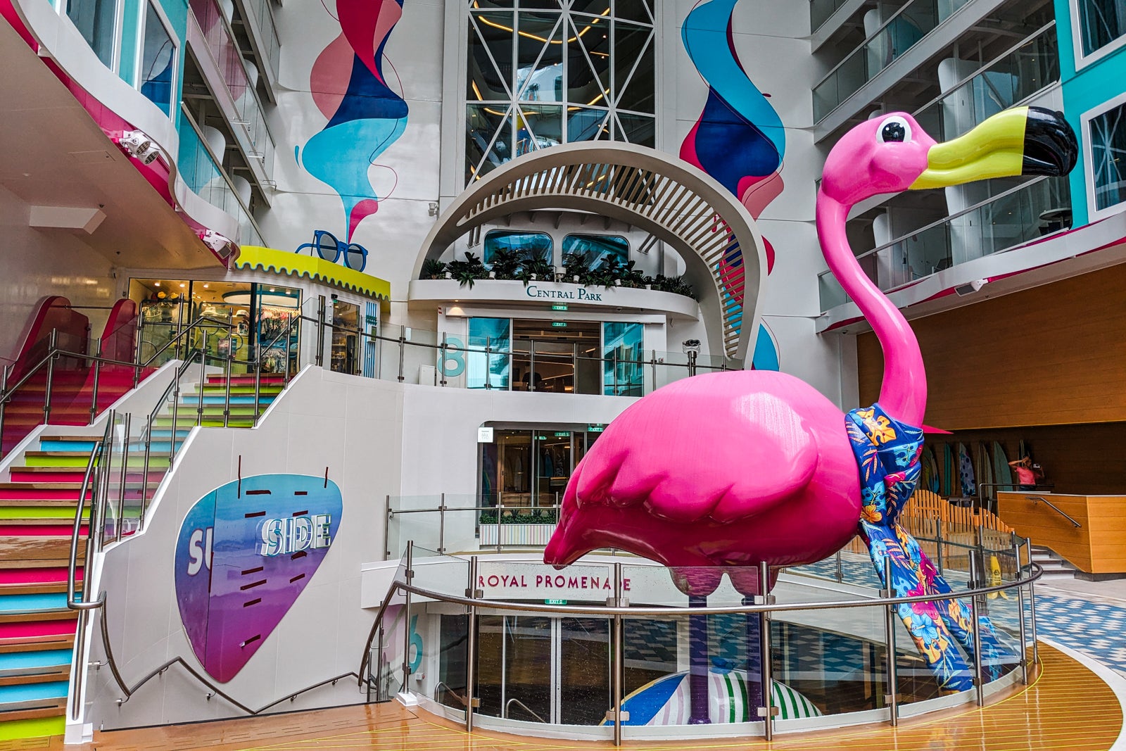 The Royal Promenade is the main route to public areas across many of Royal Caribbean's larger ships. The interior often looks like a mall, with storefronts and restaurants lined up along an artificially lit, windowless corridor. It's often your first step on board into this noisy, chaotic space, and the impact can be overwhelming. on Oasis class ships feature promenades two decks high, the upper deck ending before reaching the other side of the ship.